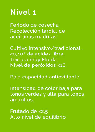 Coosur te facilita la decisión de compra identificando sus aceites de oliva virgen extra según un criterio, que clasifica a sus aceites en una escala de intensidad Coosur del 1 al 5.
